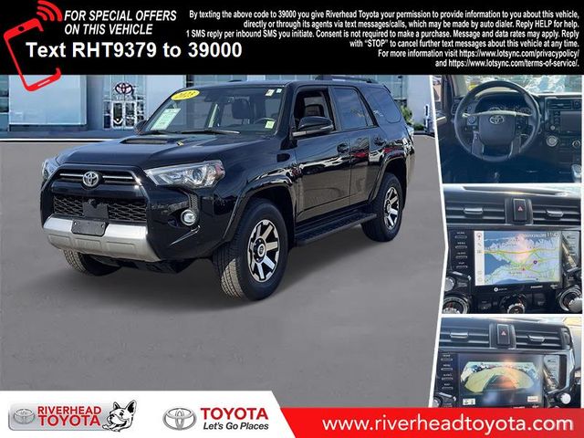 Clean CARFAX. CARFAX One-Owner. Certified. 2023 Toyota 4Runner TRD Off-Road Premium Black 4WD Toyota Certified, Clean Carfax Vehicle History, Carfax One Owner, GPS Navigation w/ Backup Camera, Sunroof / Moonroof, Bluetooth, Hands-Free, USB / AUX Inputs to play music, Leather Seats, Heated Front Seats, Premium 18" Wheels, 4WD, Graphite Artificial Leather, Moonroof Package, Off Road Package, Off Road Premium Plus Package.