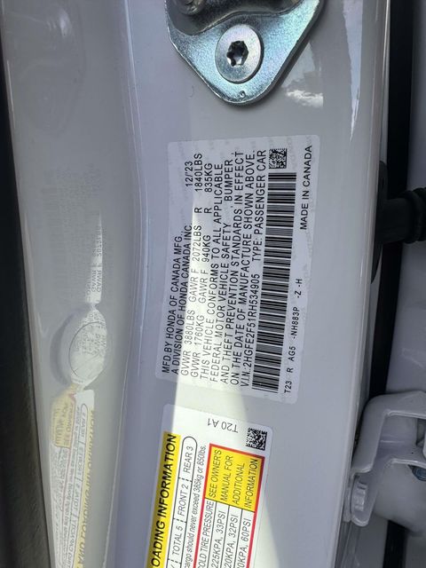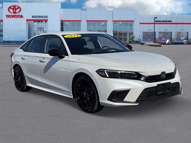 CARFAX One-Owner. 2024 Honda Civic Sport Platinum White Pearl FWD Carfax One Owner, Bluetooth, Hands-Free, USB / AUX Inputs to play music, Black Cloth.